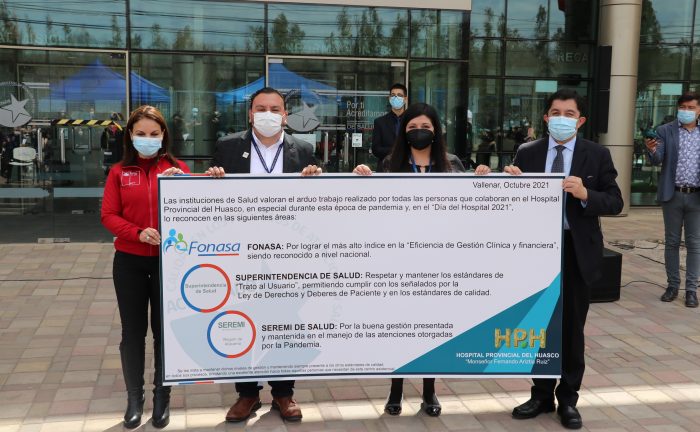 En el marco de un nuevo aniversario del Hospital, quien en junio de este año cumplió 14 años brindando salud y vida en el recinto, las autoridades e instituciones de salud valoraron la labor realizada por todas los funcionarios que trabajan en el Hospital Provincial delo Huasco, y en el Día del Hospital, hicieron entrega a funcionarios del HPH de un reconocimiento. Fonasa lo hizo por lograr el más alto índice en Eficiencia de Gestión Clínica y Financiera, siendo reconocido a nivel nacional, la superintendencia de Salud lo reconoció por respetar y mantener los estándares de Trato al Usuario, permitiendo cumplir con lo señalado en la Ley de Derechos y Deberes del Paciente y en los estándares de calidad, y de la seremi de Salud, lo felicitó por la buena gestión presentada y mantenida en el manejo de las atenciones otorgadas por la Pandemia.